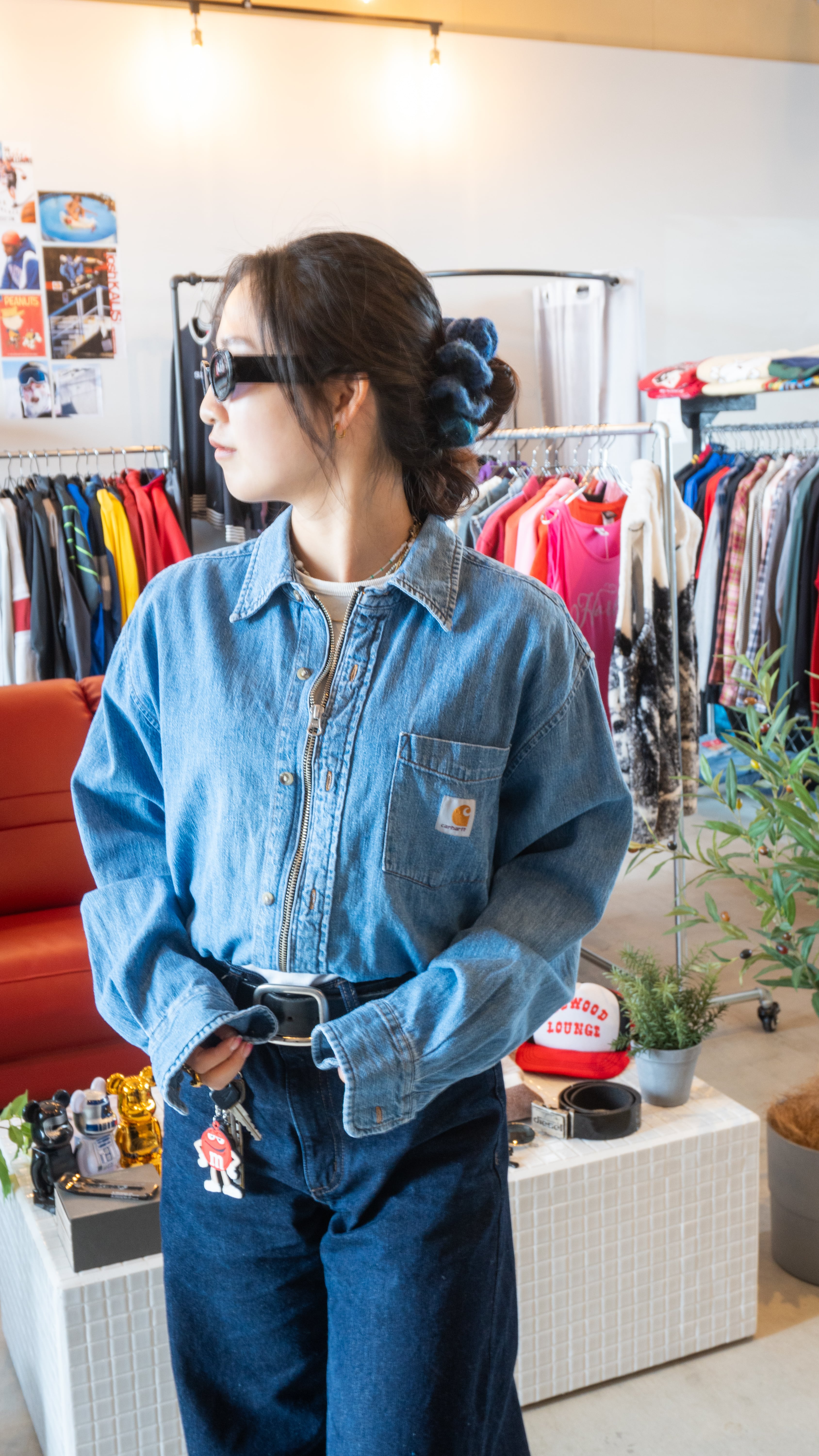 カーハートのデニムシャツを使ったリメイクアイテム。