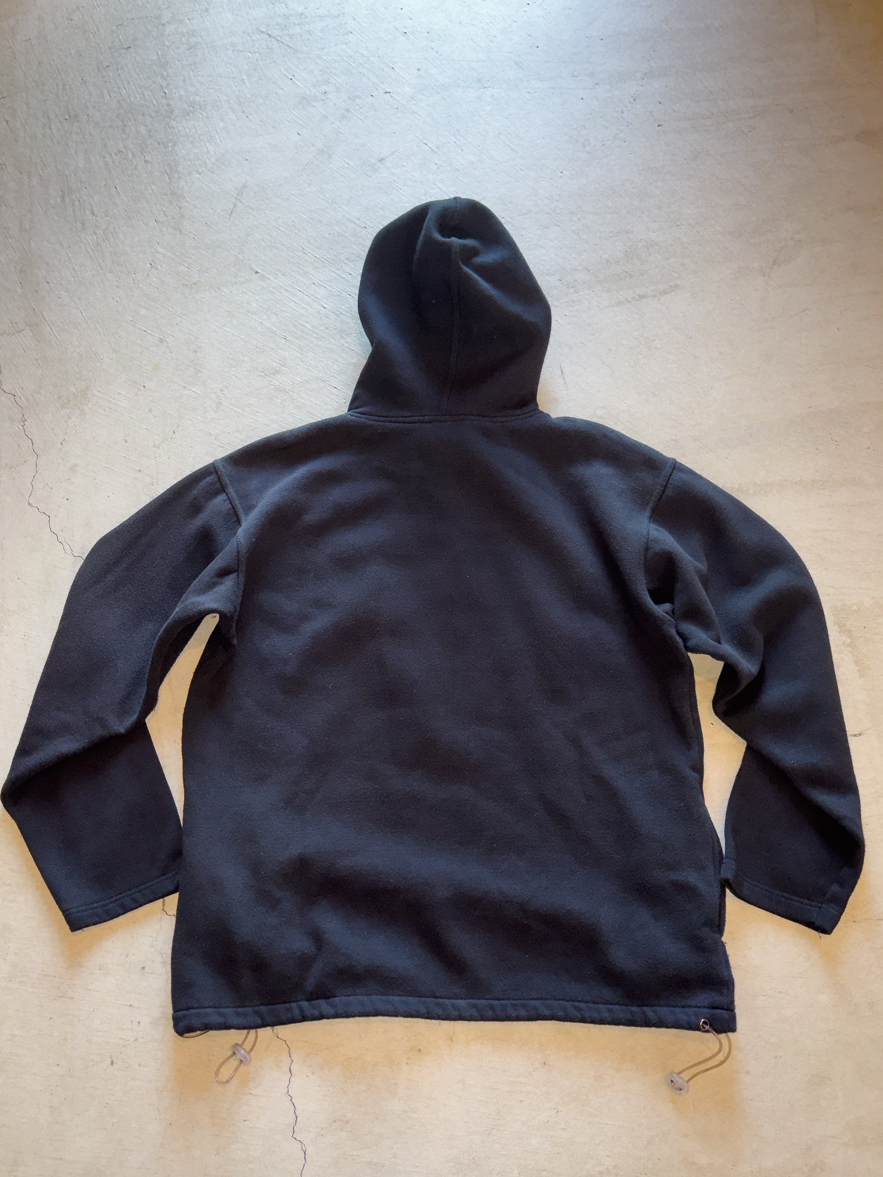ロゴ部分エナメル素材と糸刺繍デザイン。フード裏とポケット裏メッシュ仕様。フードと裾ドローコード付き。